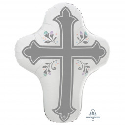 Silver and White Cross SuperShape Foil Balloon - Ideal for Confirmations, Communions and Christenings