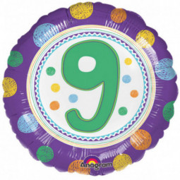 Dotty 9th Birthday Round Foil Balloon - Inflated